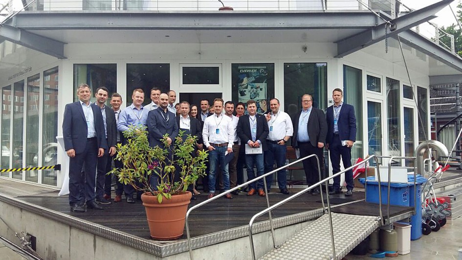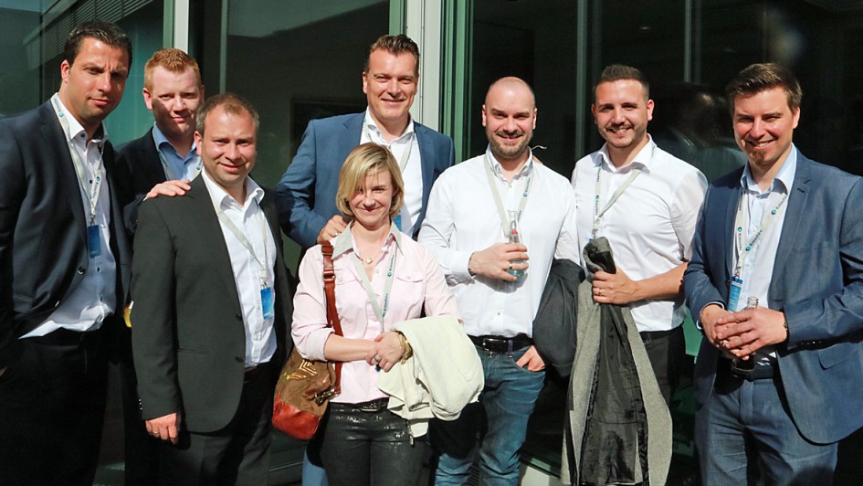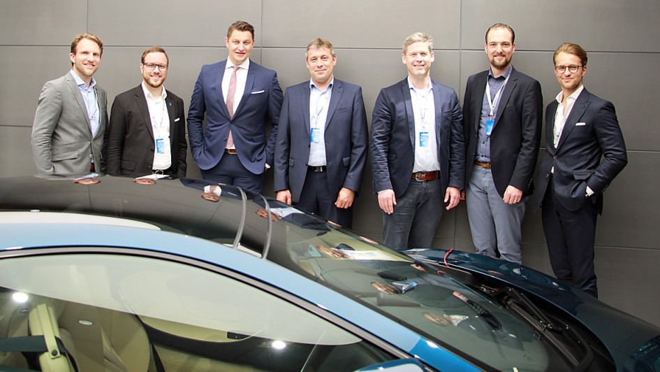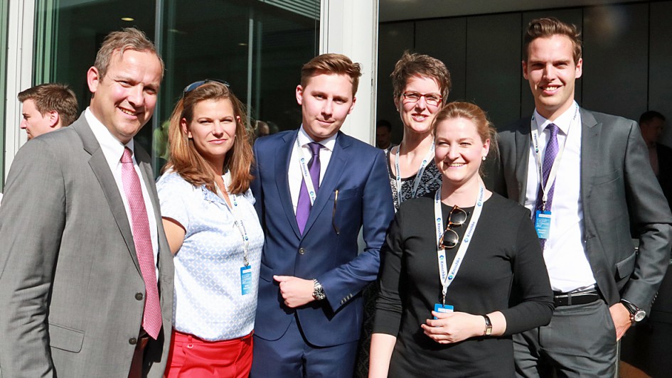 von 30: Unterstützer des jungen wie interaktiven Formats: Patrick Neumann (2.v.r.) mit v.l. Ihno Ihnen (Mobil1), Philipp Kroschke (Kroschke), Torsten Berse (Bank11), Andreas Tissen (Tissen Kruck), Sven Hölker (Bank11)und Felix Kroschke (Kroschke)