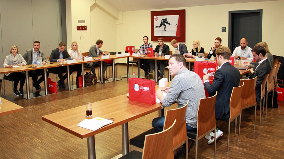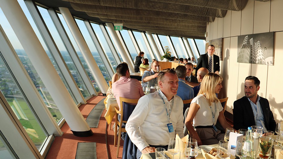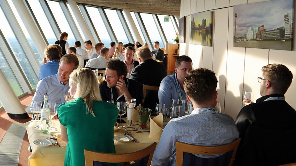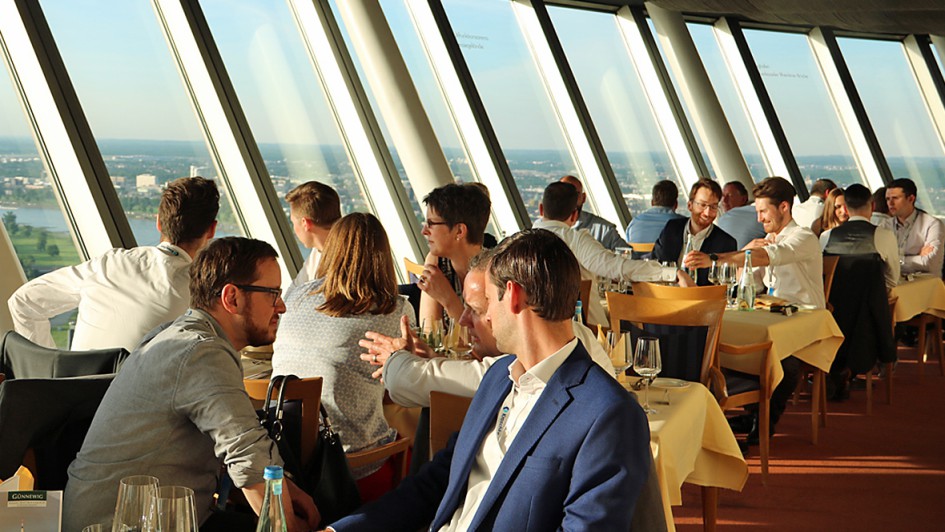 von 30: Anschließend ließen die Young Professionals den sommerlichen Abend bei einem ungezwungenen Dinner im Rheinturm über den Dächern Düsseldorfs ausklingen.