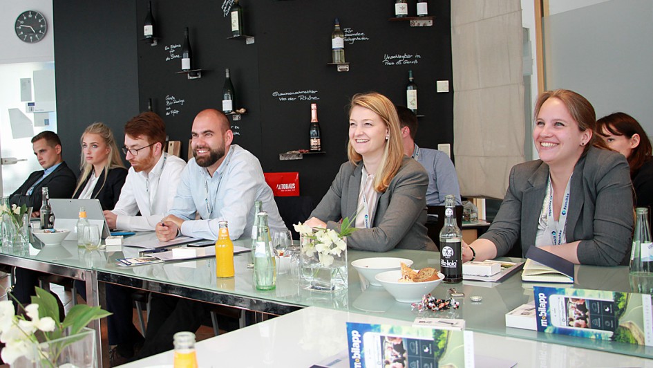 von 30: Nach dem Get together im VW Zentrum Düsseldorf ließen die Teilnehmer des 4. AUTOHAUS Young Business Days den Abend entspannt über den Dächern Düsseldorfs im Restaurant Top 180 ausklingen.