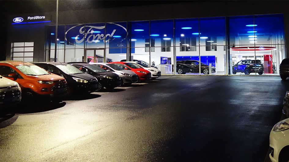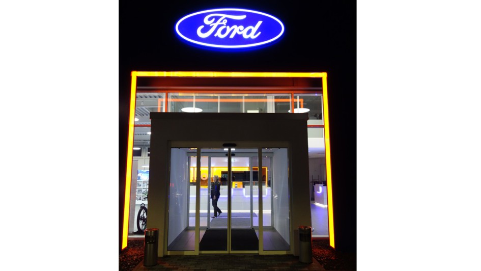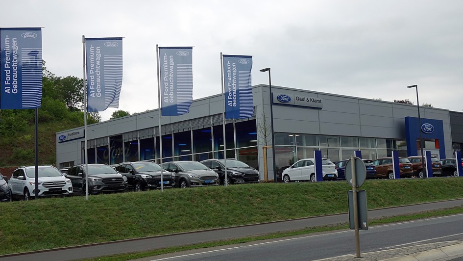 von 25: Wer von Schweinfurt kommend in die Kurstadt Bad Neustadt einfährt, steuert nolens volens auf einen Kreisel zu. Danach beginnt die eigentliche Stadt. Links davon steht nun an dieser stark befahrenen Zufahrtsstrasse der neue Ford Store von Gaul & Klamt, rechts das Autohaus Vorndran mit den Marken Renault-Dacia-Nissan. Autohäuser, das Tor zur Stadt!