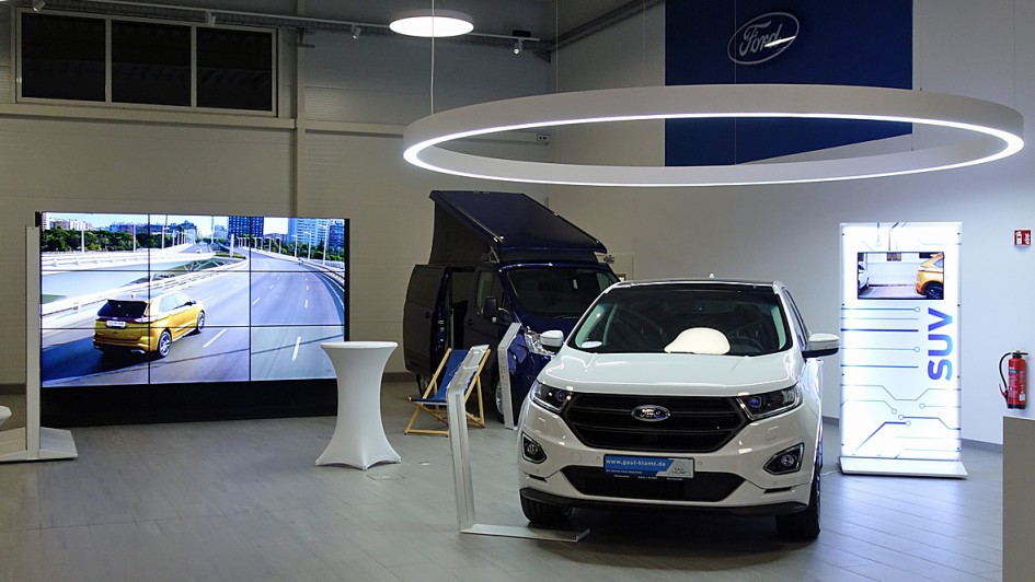 von 25: Reinhard Zillessen, Marketingdirektor Ford Werke Köln stellte kurz die Marke Ford dar, die Bedeutung des Deutschen Marktes, als drittwichtigsten Markt für Ford, ging auf die 20 Pkw-Modelle und 11 Nutzfahrzeugmodelle ein und hob das 4,5 Mrd. EUR große Investment der Fordwerke für die Elektromobilität hervor. Zum Hause Gaul & Klamt: "In den letzten fünf Jahre ist Ford um 23 Prozent gewachsen, Gaul & Klamt um 53 Prozent." Im Nutzfahrzeugbereich beträgt der Marktanteil 28 Prozent. Ford hat in Deutschland 500 Händler. 90 mit der Gattung Ford Store.