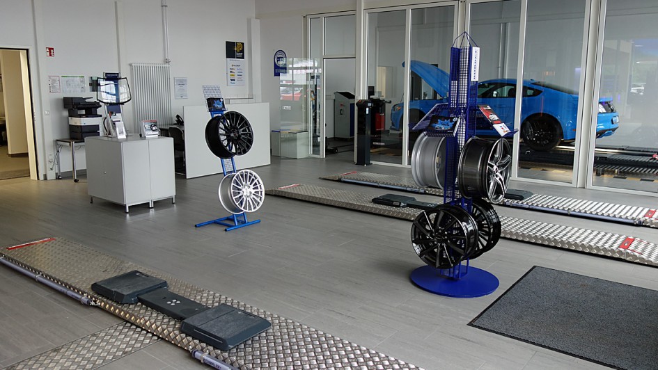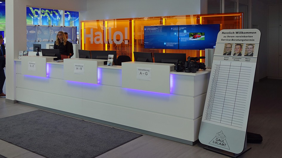 von 25: Der erste Eindruck, wenn ein Kunde durch den Haupteingang des Hauses eintritt. Hallo! Links geht es zum Showroom, rechts in den Bereich Teile und Service.