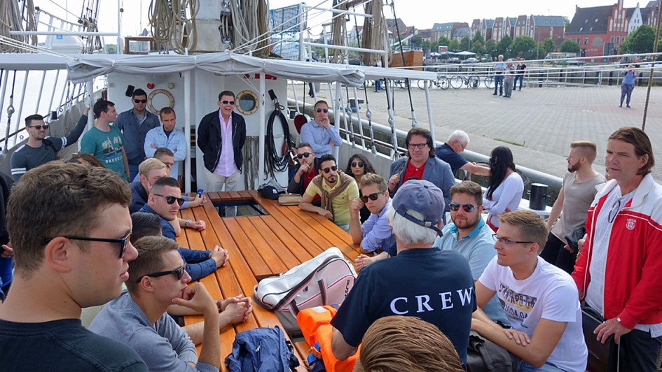 Anclam, der sich seit zehn Jahren regelmäßig als Gastdozent an der Hochschule in Geislingen engagiert: "Freiheit und Unabhängigkeit sind für mich zwei essentielle Wesensbestandteile. Als Unternehmer konnte ich das realisieren und dazu möchte unseren Nachwuchs aktiv auffordern, sich unternehmerisch zu betätigen." Weshalb diese großartige und großzügige Gastfreundschaft? Anclam: "Ich bin hier in Rostock zwei Tage mit automobiler Zukunft zusammen. Schön, wenn einer aus der Studentenschaft seine Zukunft möglicherweise bei Autoland findet. Ich möchte unsere gemeinsame Zeit auch so erleben, dass ich selber innere Freude dabei habe." Die Studenten erfahren bei W.W. Anclam, was Begeisterung ist. Er lebt sie. Sie kennt bei ihm keine Grenzen. Das steckt an.
