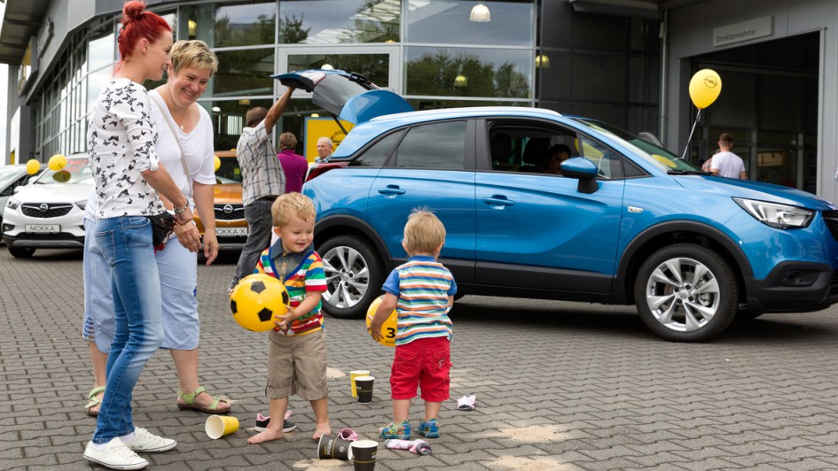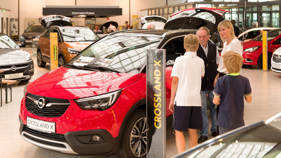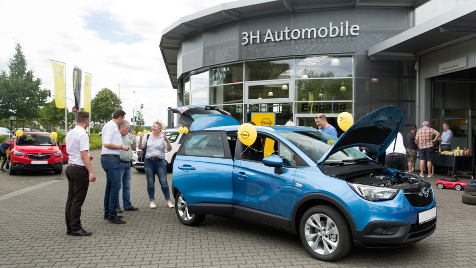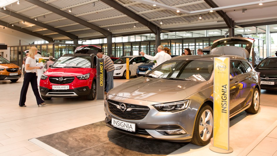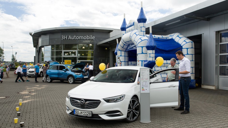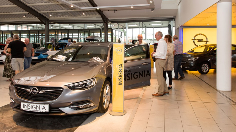 von 9: Händlertag für Insignia und Crossland X: Opel-Chef Michael Lohscheller (r.) mit Michael Günther, Geschäftsführer Autohaus Günther & Schmitt GmbH