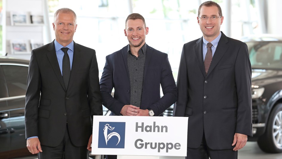 von 4: V.r.n.l.: Steffen Hahn (Gesellschafter und Vorsitzender der Geschäftsführung der Hahn Gruppe), Tobias Hopf (Gesellschafter und Geschäftsführer von Auto Blank) und Frank Brecht (Vorsitzender der Geschäftsführung der Hahn Gruppe)