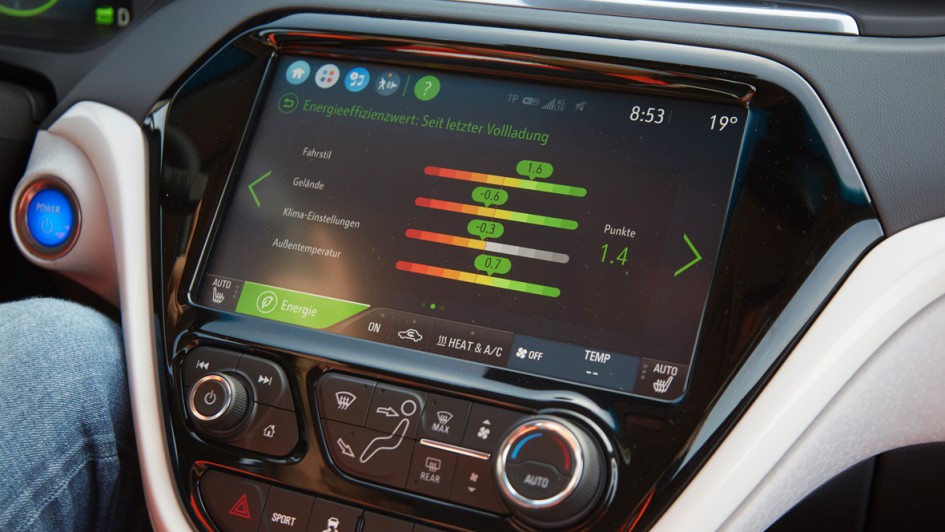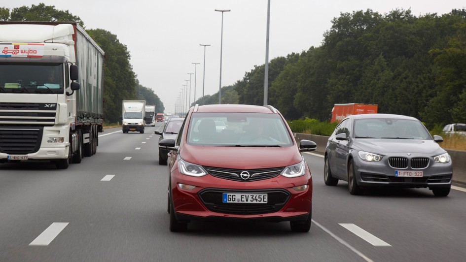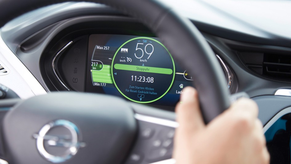 von 12: Wenn man tatsächlich die 150 Sachen ausfahren möchte, die Opel als Spitzentempo zulässt, dann schmilzt die Reichweite schneller als man schauen kann