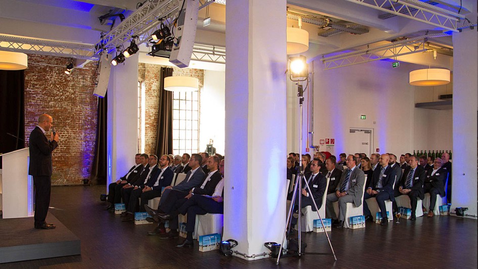 von 9: Ralph Plegau und Tobias Mühle (m.) freuten sich über den Award, der von Dr. Matthias Schubert (l.) und Torsten Brämer (r.) vom TÜV Rheinland überreicht wurde.