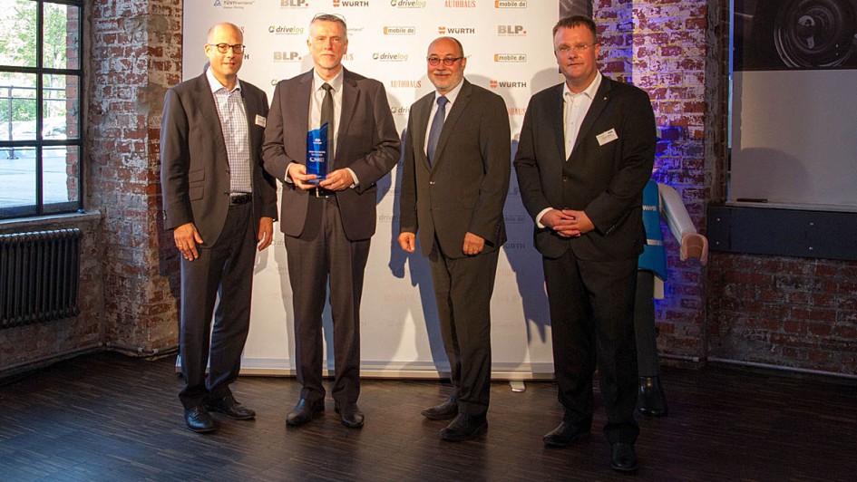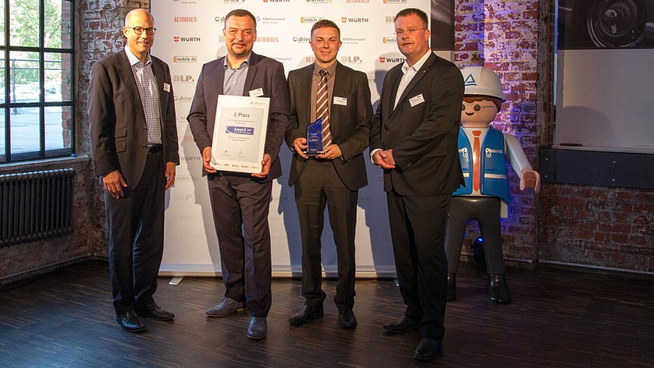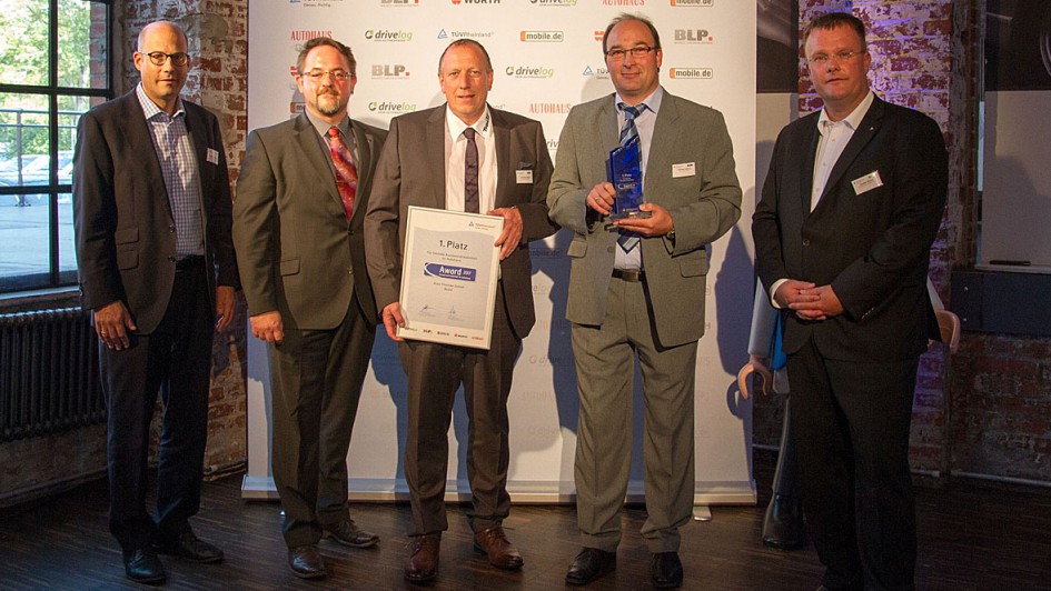 von 9: Die stolzen Sieger: Patric Weiß (2.v.l.), Christian Siebert (m.) und Michael Kallmes (2.v.r.) nahmen für die Auto Thomas GmbH die Auszeichnung entgegen.