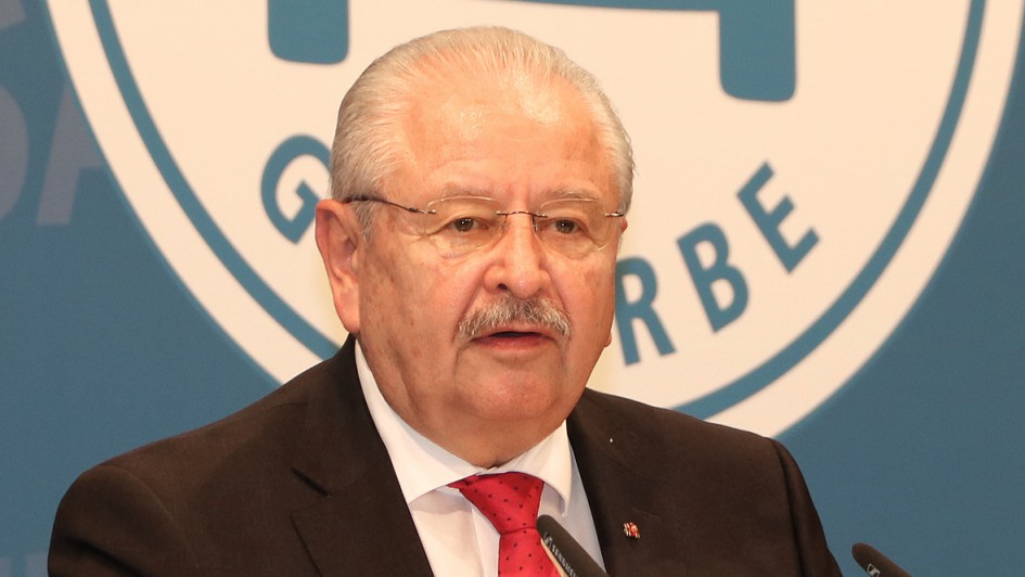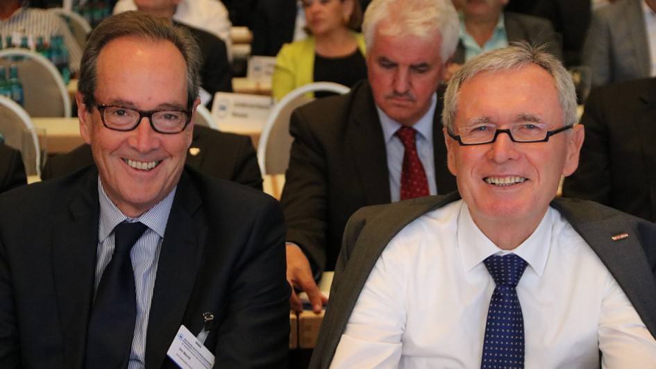 von 15: Das Präsidium Thomas Peckruhn, Jürgen Karpinski und Wilhelm Hülsdonk (2. Bis 4. V. li.) erläuterte seine aktuelle Politik in einer Gesprächsrunde mit Hauptgeschäftsführer Dr. Axel Koblitz (li.).