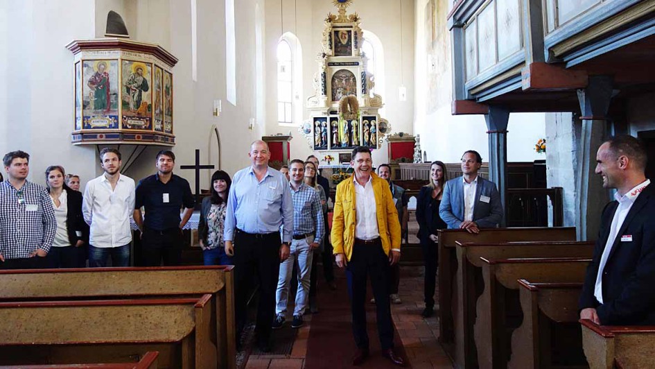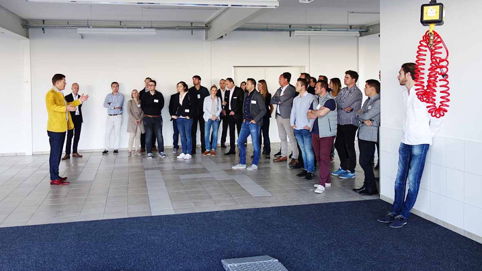 von 15: Am zweiten Tag trafen sich die Zukunftsmacher im Autowerk. Zur Unternehmensgruppe gehört auch inzwischen das Hotel Bavaria. Übernachtungspreis – ohne Frühstück – 49 Euro. Im Bild die geladenen Nachwuchskräfte des Kfz-Handels.