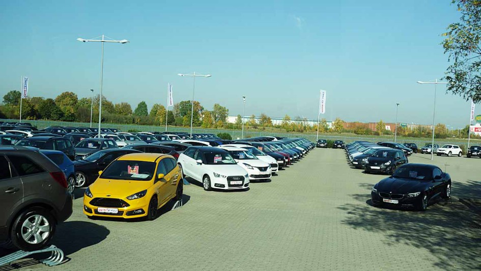 von 15: Warenpräsentation! Der erste Eindruck entscheidet. Man beachte die Fahrzeugausrichtung, die Beschriftung, aufstehende Motorhauben oder den geöffneten Kofferraum. Die Auto-Landschaft lebt!