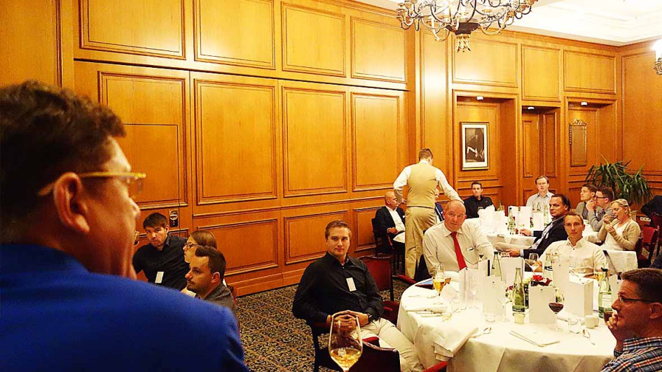von 15: Im stilvollen Ambiente der Vinothek aus dem Jahre 1770 sowie im Rubinsaal des Hotel Fürstenhof begrüßten der Mobilitätsvorstand von Santander, Thomas Hanswillemenke, und Wilfried Wilhelm Anclam das Exklusivforum der Nachwuchskräfte des Kfz-Handels. Firmenchef Anclam brachte dazu seine drei Bereichsleiter Verkauf mit sowie seine Leiter Einkauf, IT, Online, Marketing. Anclam gab eingangs einen Abriss seiner vierzig Jahre unternehmerischen Wirkens und stellte als Antrieb für seine Selbständigkeit die Werte Unabhängigkeit und unternehmerische Freiheit in den Vordergrund. Seinen unternehmerischen Ursprung legte Anclam 1977 in Hannover. 1990 folgte die Erweiterung nach Leipzig.