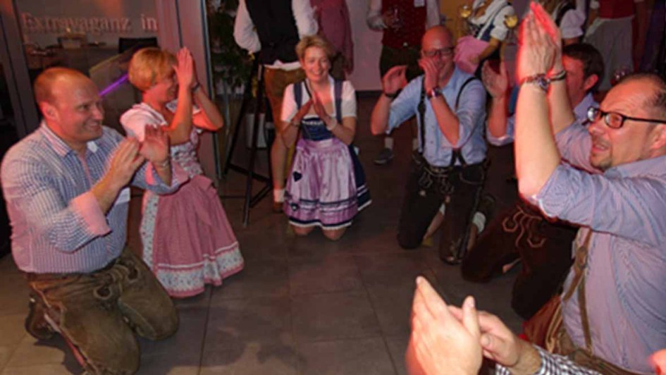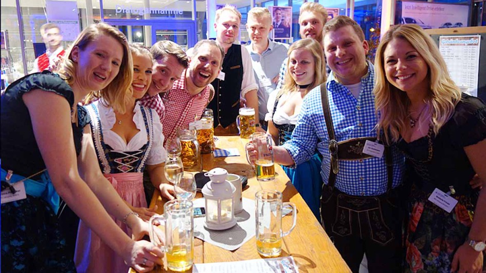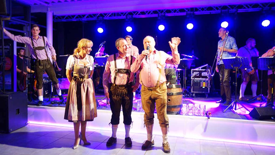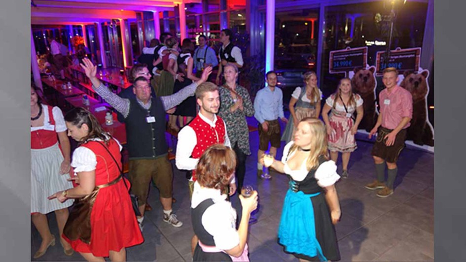 von 19: Auch wenn Northeim in Niedersachen liegt, zum Oktoberfest kam ganz Deutschland in Leserhosen und Dirndl. Helmut Peter, BFC-Vorstandsvorsitzender und seine Frau Gabriela mit Sylvia Gerl empfingen um 18 Uhr die Gäste zum Oktoberfest im Autohaus. Dazu wurde der Verkaufsraum auf Bayerisch getrimmt, von Lichteffekten bis hin zur Oktoberfestband "Leserhosen-Express", die bis spät in die Nacht unüberhörbar Vollgas gab.