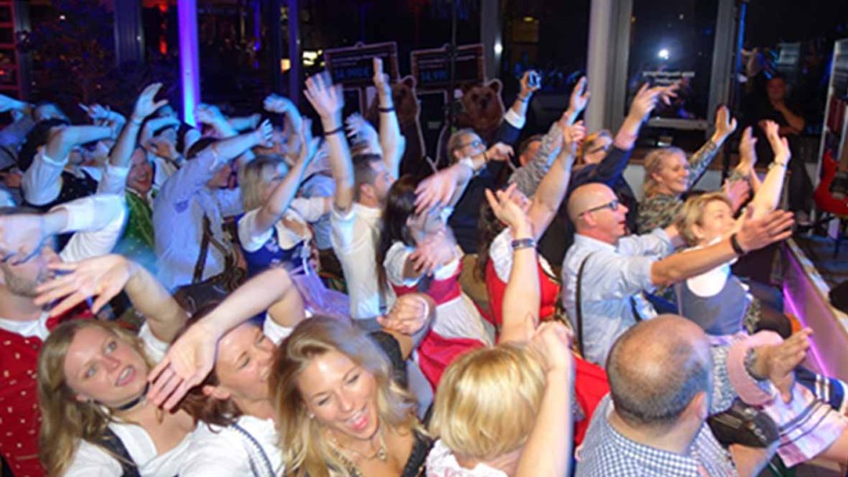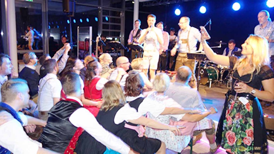 von 19: Der "Lederhosen-Express" drückte nach dem opulentem Essen kräftig auf die Hupe. Erst solides Schunkeln, dann stehen, dann auf und nieder....