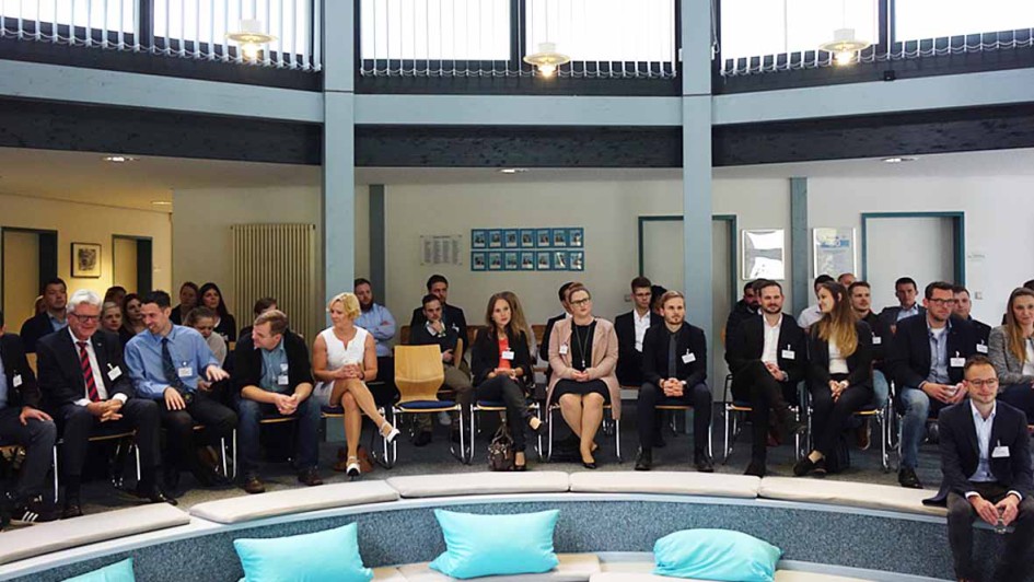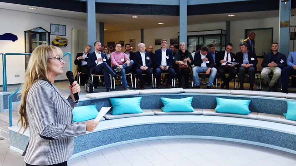 von 19: Die Geschäftsführerin der BFC Sylvia Gerl begrüßte in der Rotunde der BFC die Teilnehmer des Alumni-Treffens 2017, darunter auch einige von der Bundesfachschule für Betriebswirtschaft Calw. Ein besonderer Gruß galt der stellv. BFC-Vorsitzenden Petra Brandl.