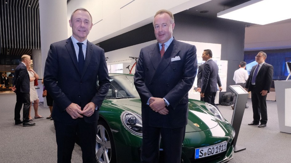 von 13: Nach Ansicht von Franz Jung, China-Chef von Porsche (l.), bringt traditionelle Markenwerte und modernste Technologien auf einzigartige Weise zusammen.