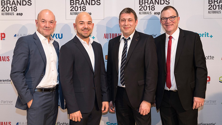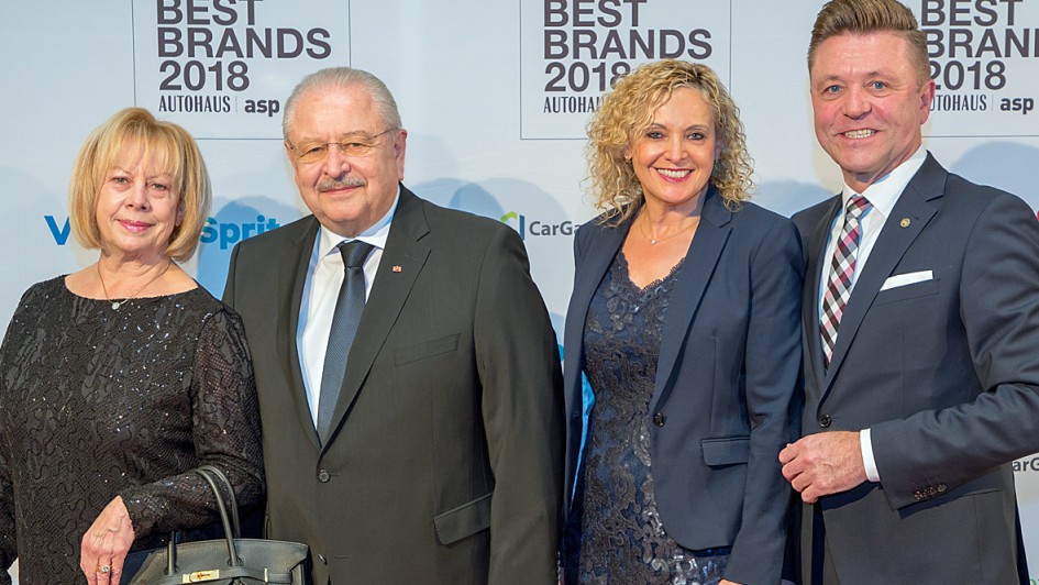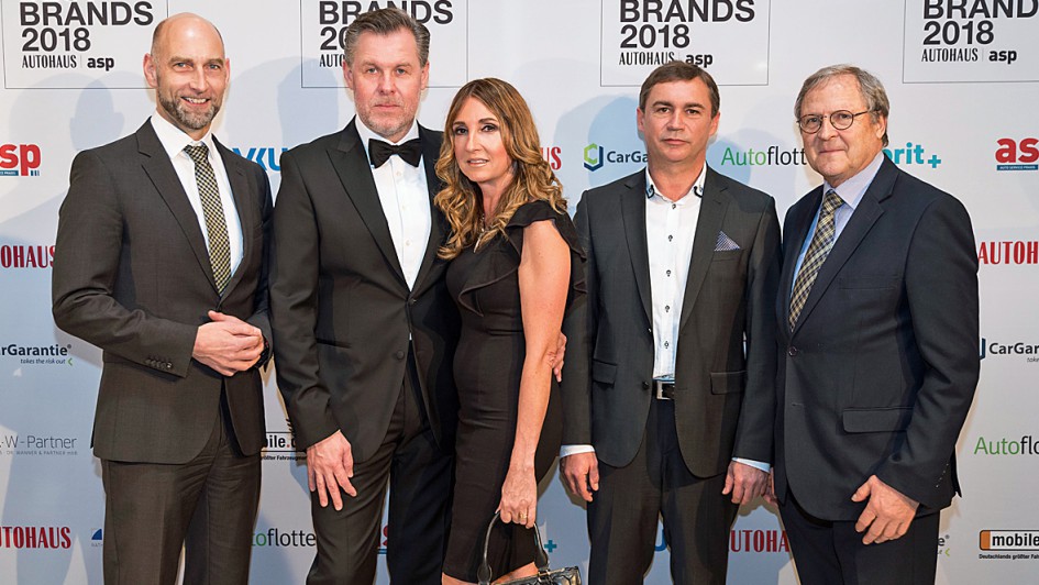 von 71: Jürgen Ohr (Trias) mit den Autohändlern Dieter und Tina Horn (Autohaus Betz), dem Kfz-Obermeister Richard Wagner (Autohaus Richard Wagner) und Hans Medele (Autohaus Medele).