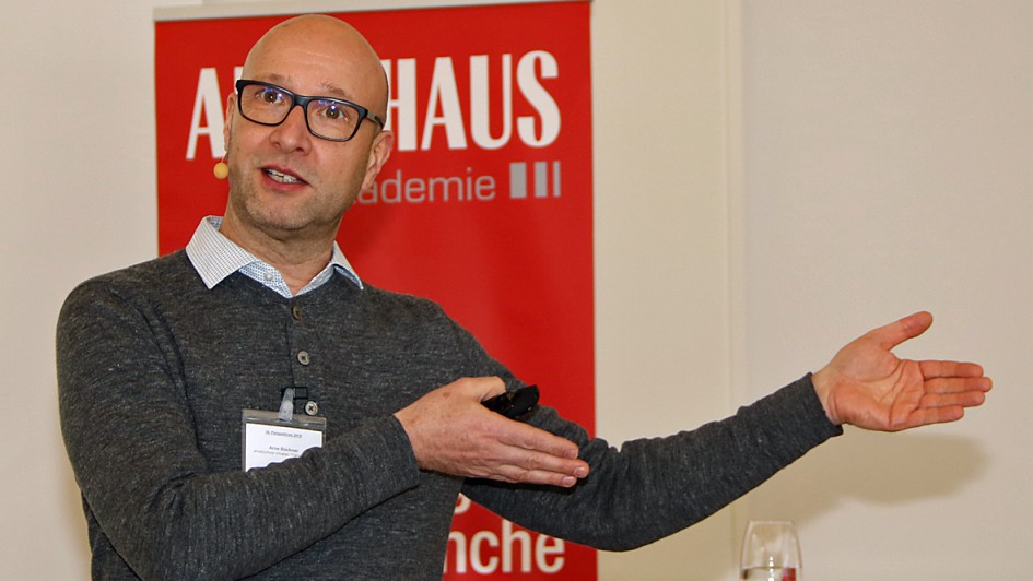 von 23: Arne Büchner trat gleich zwei Mal auf: Der Trainer mit kabarettistischer Veranlagung präsentierte unter anderem ein Provisionssystem für die Werkstatt.