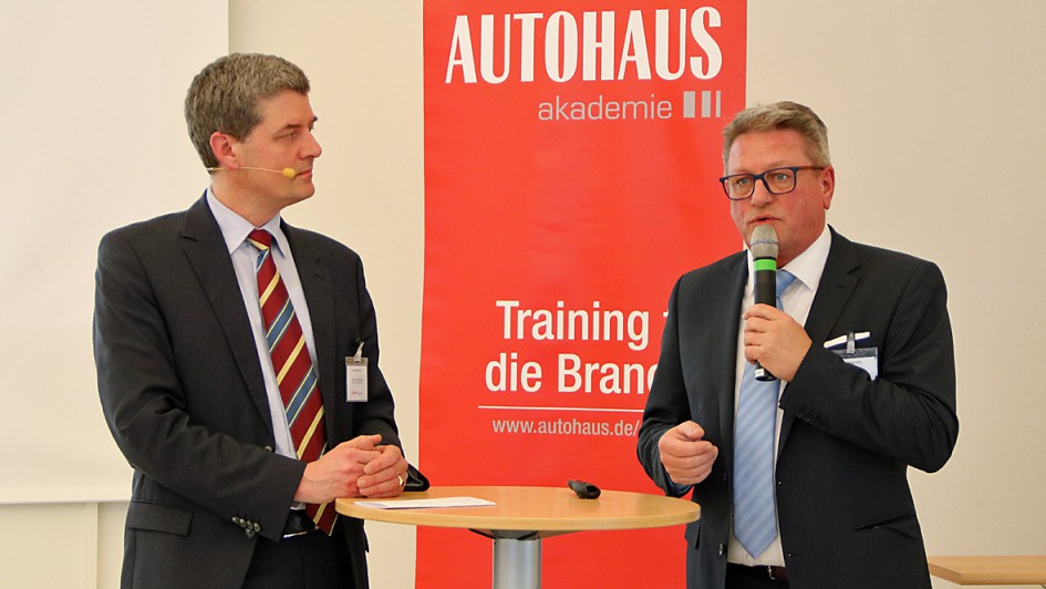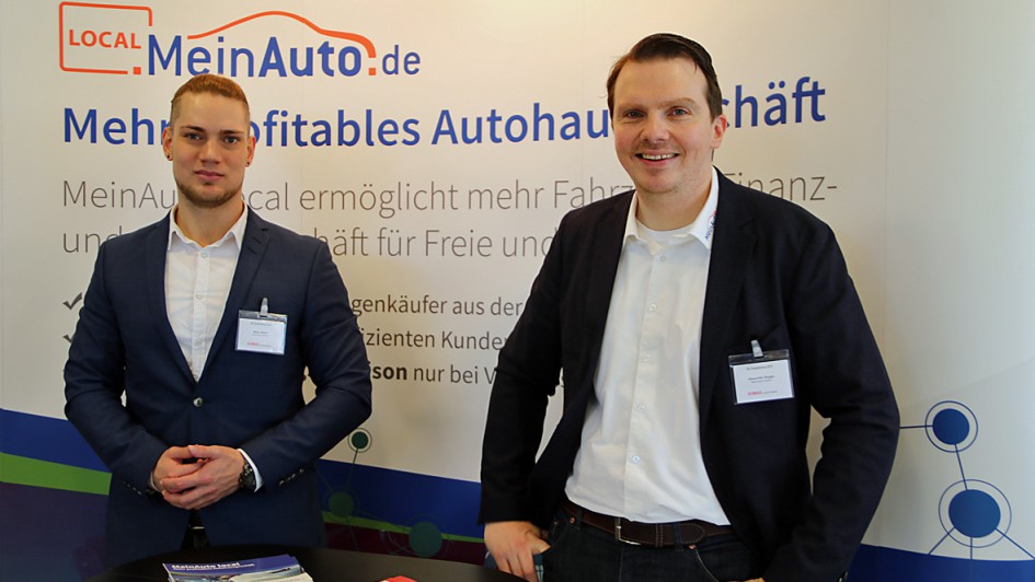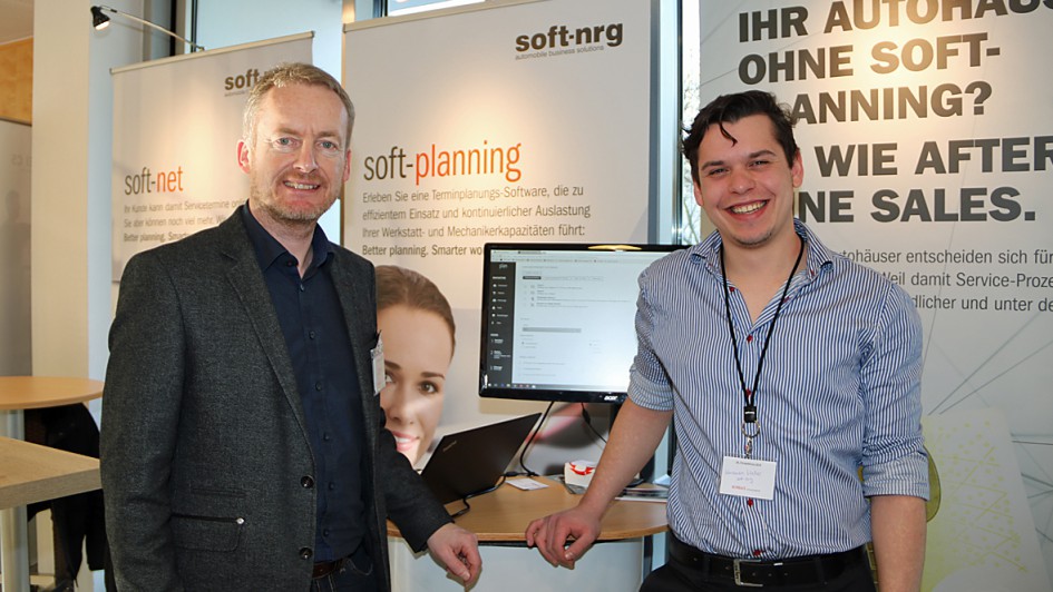 von 23: Werner Popp von der Bank Deutsches Kfz-Gewerbe (BDK) (r.) erläuterte im Gespräch mit Jörg von Steinäcker was die BDK in diesem Bereich zu bieten hat.