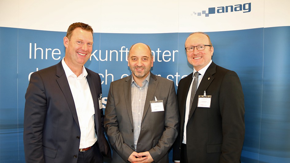 von 23: Die ANAG war auch unter den Ausstellern, v.l.: Vorstand Christian Hegel, Sales Manager Armin Nolden und Dirk Heinemann von der CG Car-Garantie.