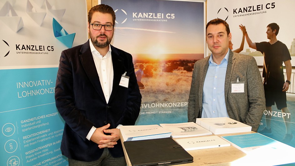 von 23: Wie können auch mittelständischen Unternehmen ihren Mitarbeitern Boni zukommen lassen und dabei selbst sparen? – Darüber informierte die Kanzlei C5 mit Tobias Wolf (l.) und Dominik Pernar.