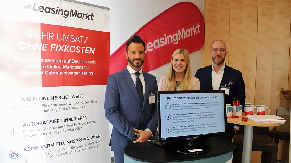 von 23: Marktplatz für Leasingautos: Fabio Abbruzzese, Nina Thelen und Geschäftsführer Thomas Behrens (v.l.) informierten über die Möglichkeiten von LeasingMarkt.de.