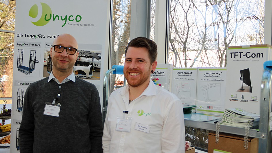 von 23: Premium Lösungen für Autohaus, Werkstatt, Industrie und Büro bietet Unyco, das zweite Standbein von Arne Büchner (l.). Hier mit Mitarbeiter Kay Peschke.