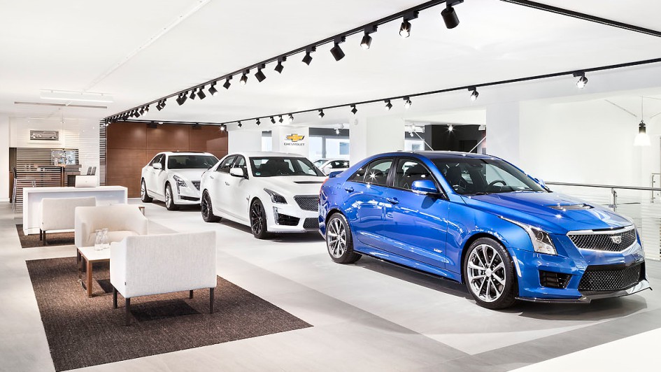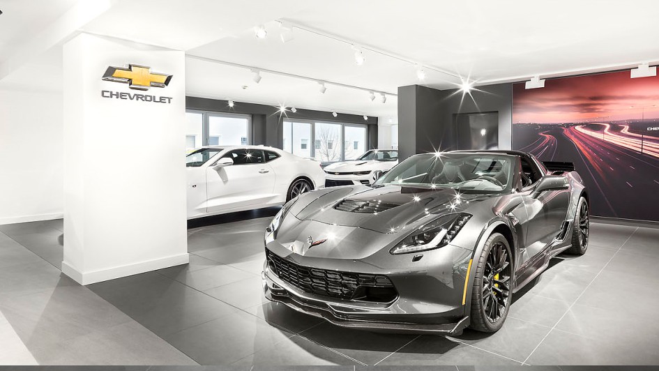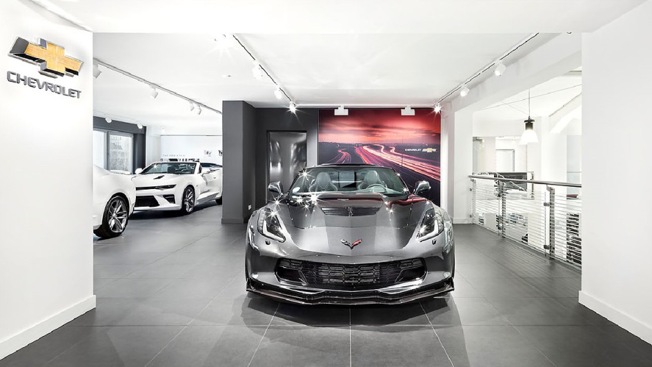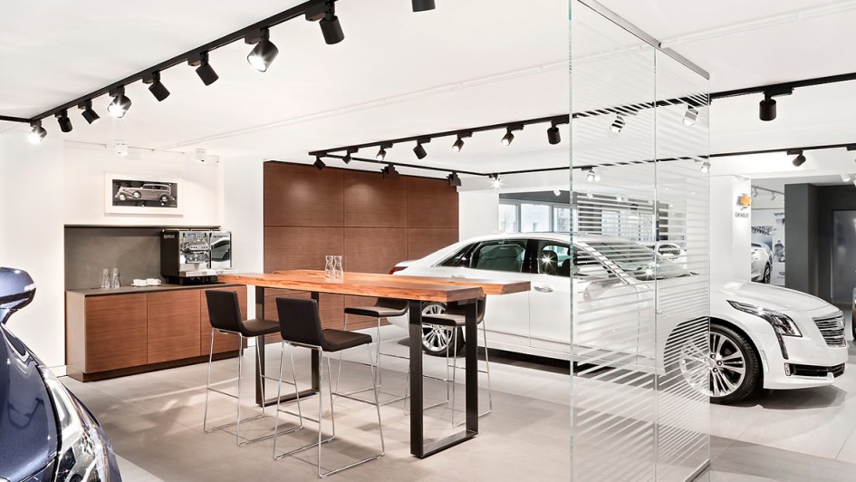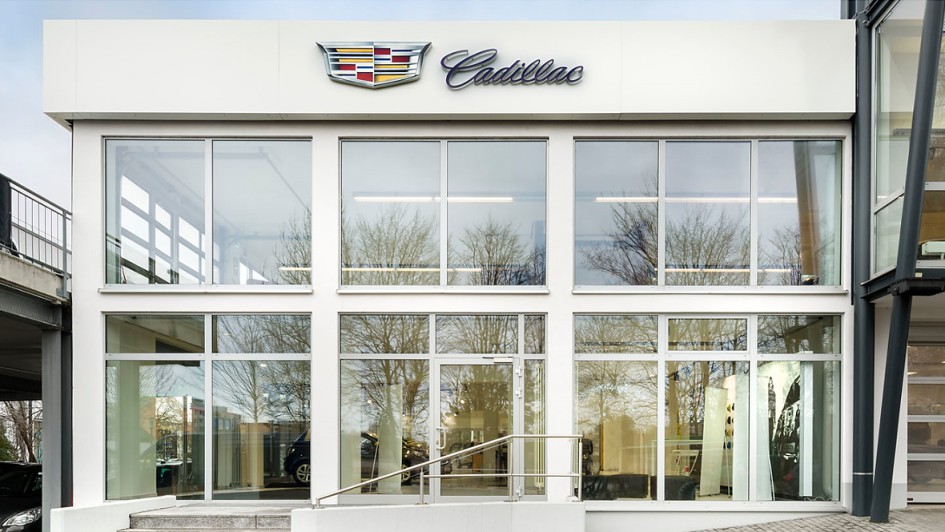 von 6: V.l.n.r.: Ulf Pfeiffer, Bereichsvorstand AVAG Holding, erhält aus den Händen von Darko Pehar, Manager Händlernetz, Qualität und Messung Cadillac und Chevrolet Europa, sowie Felix Weller, Vize-Präsident Cadillac Europa, eine Collage im Pop-Art-Stil.