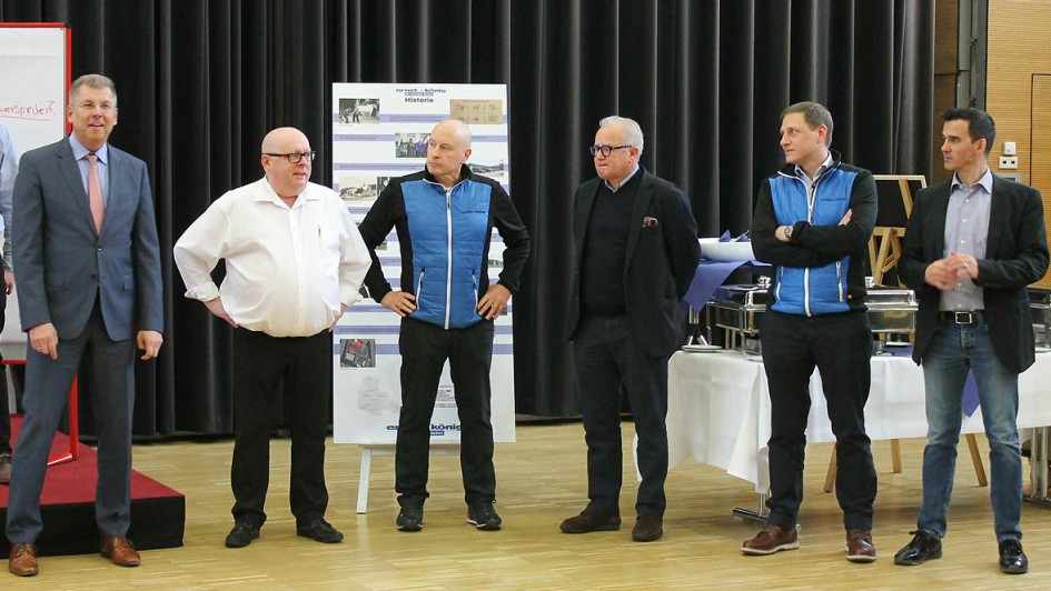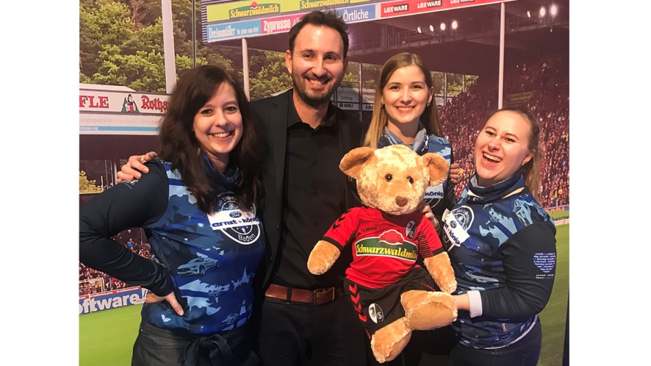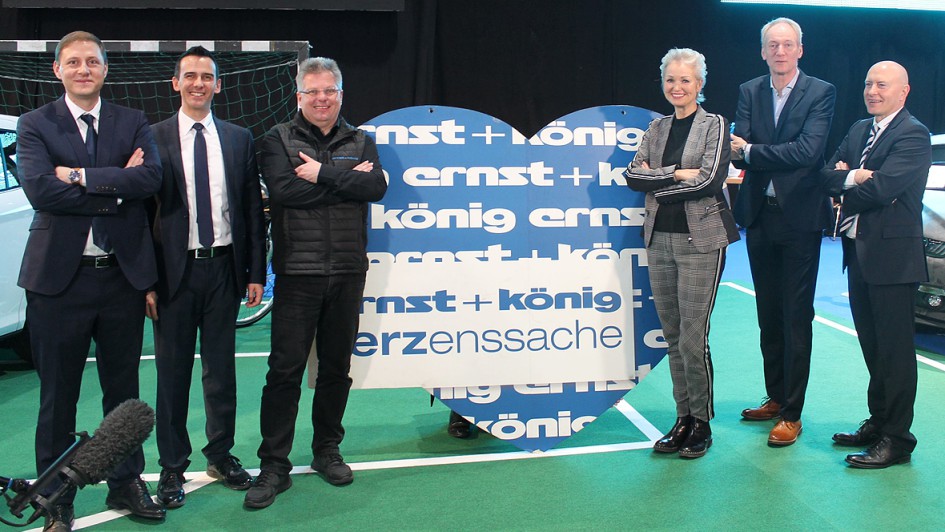 von 16: Kooperation live. Der SC Freiburg unterstreicht mit seinem Trainer Christian Streich hohe Könnerschaft und Originalität. Der direkte Verbund von Ernst & König und dem SC Freiburg spiegelt das Motto des Verbundes wider: Die Mannschaft hinter der Mannschaft! Optisch wirkungsvoll auf dem Messestand von Ernst & König umgesetzt.