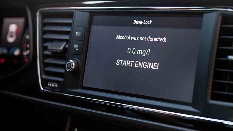 von 4: Bevor der Motor gestartet werden kann, muss der Fahrer in ein kleines Gerät pusten, dass ähnlich wie bei einer Polizeikontrolle den Promillegehalt im Blut misst.