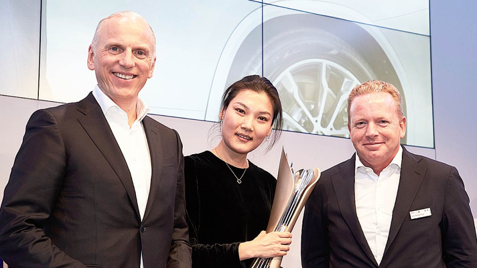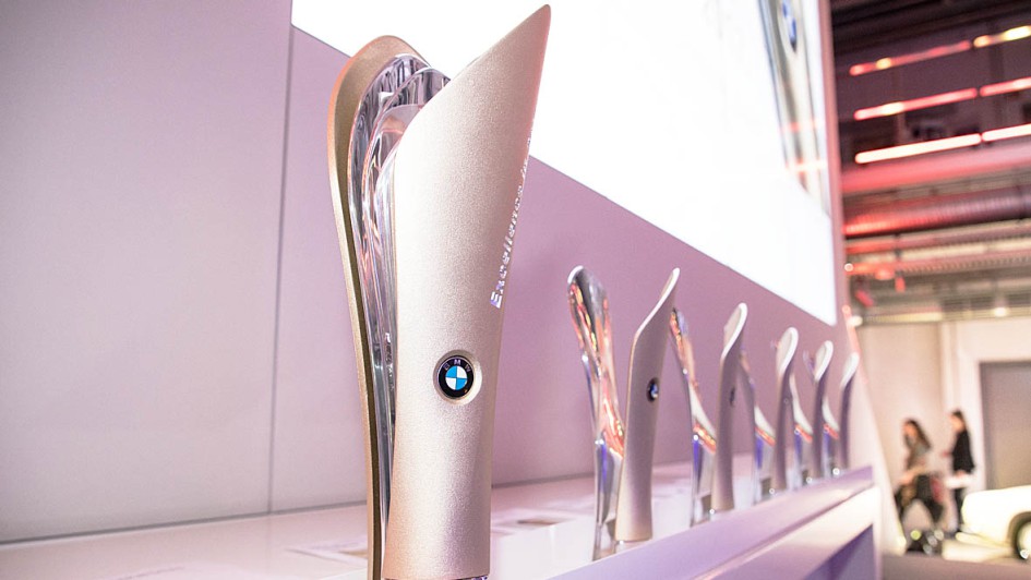 von 9: Pieter Nota, Mitglied des Vorstands der BMW AG, Vertrieb und Marke BMW, Aftersales BMW Group (links) übergab gemeinsam mit Jean-Philippe Parain, Leiter Vertriebsregion Europa (rechts), den Preis in der Kategorie "Sales" an Hangzhou Hecheng Zhibao, China.