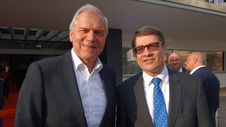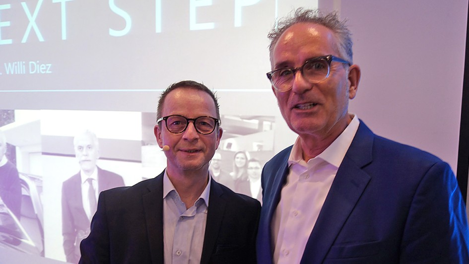 von 27: Clemens Klinke, Mitglied des Vorstands Dekra SE (li) und Dr. Volker Borkowski, Geschäftsführer der MAHAG Klinke: "Wir führen seit zehn Jahren jedes Jahr mit Prof. Dr. Diez eine Branchenstudie durch. Er leistet dazu einen gewichtigen Beitrag für die gesamte Branche. Ich hoffe, das der "Next Step" die elfte Studie mit uns sein wird."