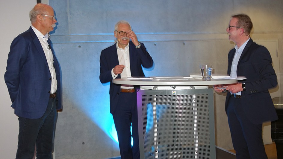 Zetsche hob das neueste Buch von Prof. Diez ("Wohin steuert die Deutsche Automobilwirtschaft") hervor und meinte humorig: "Damit beschäftigen wir uns auch." Zetsche zählte die zentralen Blöcke Digitalisierung, Intelligent Drive, die Elektrifizierung und zukunftsweisende Services auf. "Was bei Daimler CASE, könnte man auch mit Diez umschreiben: Drive, Intelligent, Elektrik, Zukunft!" Das legte Zetsche grafisch auf und wünschte sich noch lange den Einfluss von Diez für den Nachwuchs.