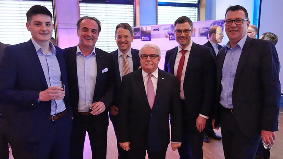 von 27: ZDK-Ehrenpräsident Bernhard Enning wollte den ZDK live vertreten (l.). Michael und Andrea Pickl (beste Masterabsolventin 2017) sowie Michael Eidenmüller von der Scholz-Gruppe Erlangen-Bamberg sowie Klaus Zellmer, Porsche-Chef Nordamerika. Den hiesigen Händlern als ehemaliger Porsche-Chef Deutschland vertraut.