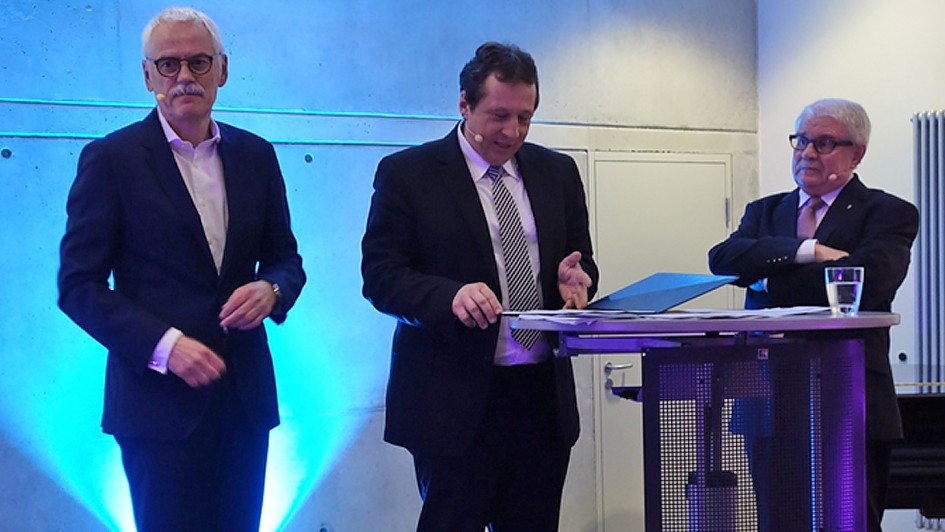 von 27: Sie feiern in Kürze 100 Jahre Landesverband Baden -Württemberg und haben gut lachen: Landesverbandspräsident Dr. Harry Brambach (r.), Michael Ziegler, Vorstand und Vizepräsident Ludger Wendeler.