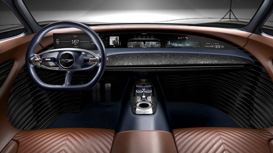 von 9: Wie künftige Genesis-Modelle aussehen könnten, zeigen die Hyundai-Marke mit der Studie eines rein elektrisch angetriebenen Gran Turismo namens Essentia Concept.