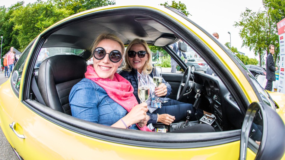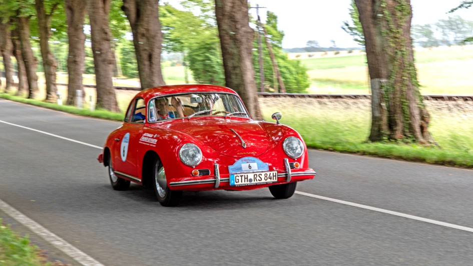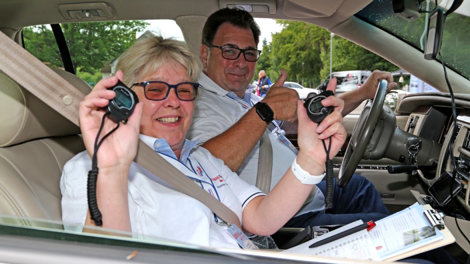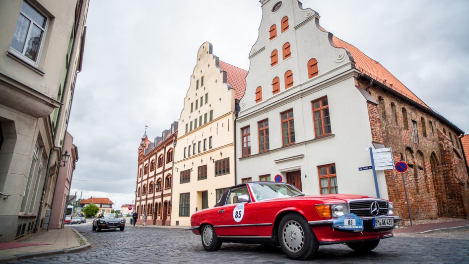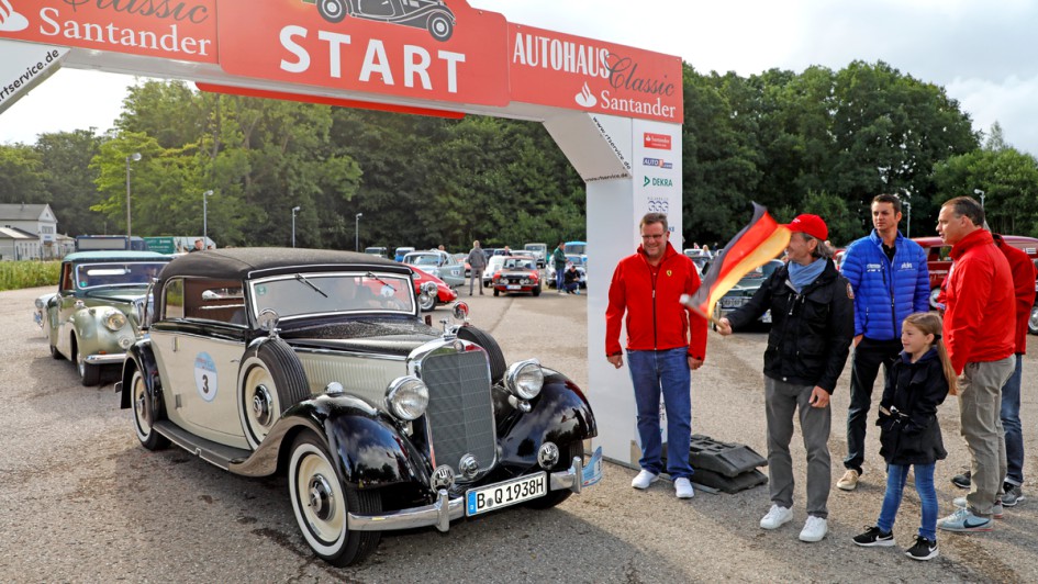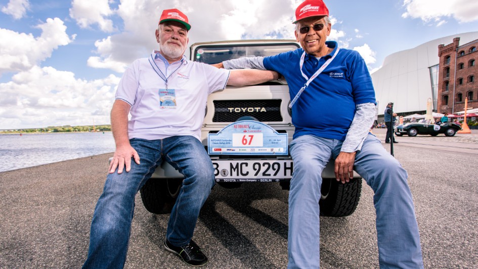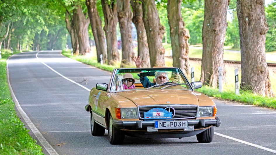 von 20: Was wäre die AUTOHAUS Santander Classic-Rallye ohne seine Autohändler? In einem Mercedes-Benz 500 SL von 1985 gingen Holger Thon (l.), Verband der Vermittler und Servicepartner für Mercedes-Benz, und Heiko Peters, AH Peters, an den Start.