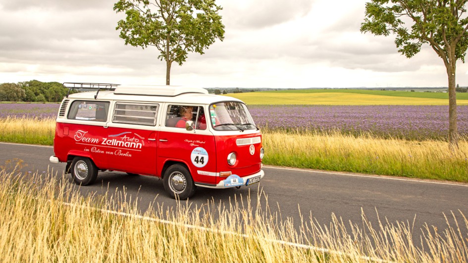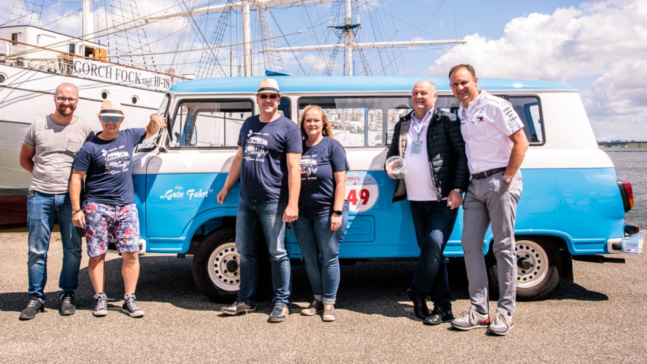 von 20: Gruppenausflug: Das Autohaus Peter kam mit einem Kleinbus der VEB Barkas Werke zur Rallye. Entsprechend groß war die Crew um Helmut (2. v. r.) und Andreas (r.) Peter.