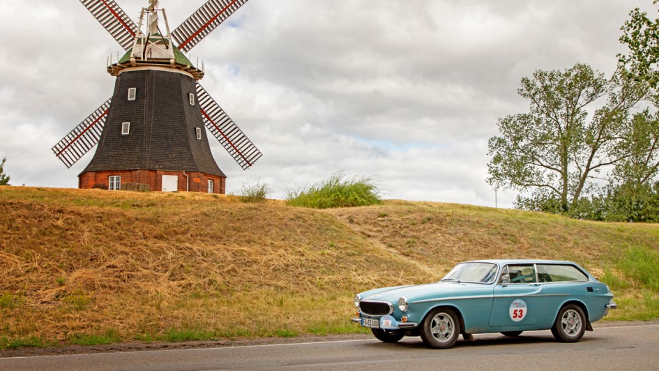 von 20: Beliebter Fotopunkt an der Windmühle: Diesmal stellte sich der Volvo 1800 ES von Maria und Reinhold Friedrich, Autohandel Friedrich & Maier, zur Schau.