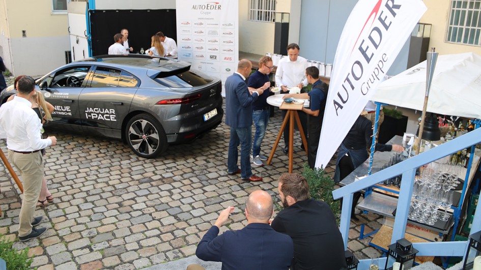 von 3: Im Innenhof der "Kounge" von Holger Stromberg präsentierte das Flottenleistungszentrum der Eder-Gruppe einem kleinen Kreis die Modelle von Jaguar Land Rover.