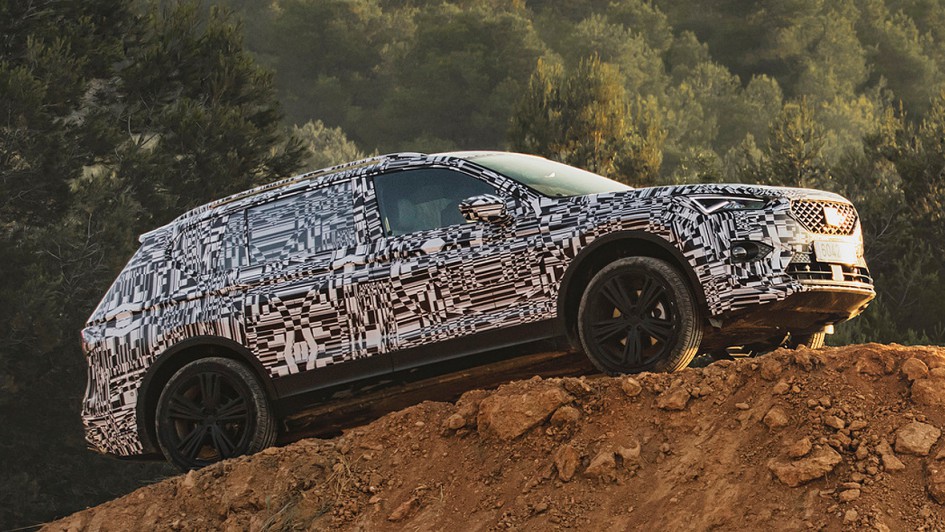 von 6: Bei einer ersten Probefahrt mit dem noch umfangreich getarnten Tarraco im katalanischen Hinterland stellt der Wagen seine höchste Tugend unter Beweis: Er bietet jede Menge Platz.