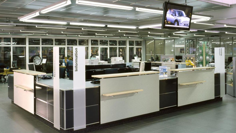 von 12: Blick zurück in die Vergangenheit. So sah die Kundendienstannahme bei BMW einmal aus. Die Serviceberatungsbereiche des allerersten Konzepts wurden wegen ihrer Trennwände hinter vorgehaltener Hand liebevoll Pferdeboxen genannt.