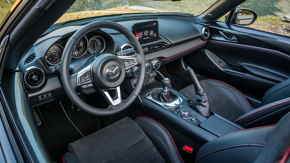 von 8: Mit dem i-Activesense-Paket ziehen ein City-Notbremsassistent, eine Rückfahrkamera, eine kamerabasierte Verkehrszeichenerkennung und ein Müdigkeitswarner in den Roadster ein.