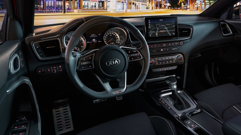 von 6: Das Interieur, das vom Konzept her dem des Ceed entspricht, wird mit Sportsitzen in verschiedenen Ausführungen, Sportlenkrad und schwarzem Dachhimmel angeboten.