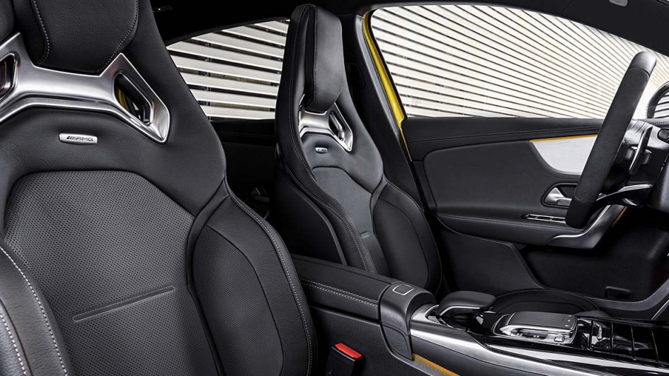 von 11: Beim A 35 setzt Mercedes auf ovale Auspuffendrohre, der Nachfolger des A 45 dürfte sich optisch durch zwei Doppelrohre vom "kleineren" Bruder abheben.