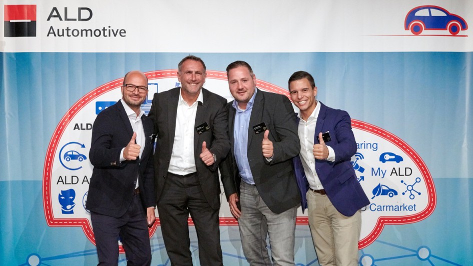 von 16: V. l. n. r.: Rolf Liebig (Leitung Regional Sales, ALD Automotive), Rainer Lang (Auto & Service PIA GmbH), Christian Reinhart (Auto & Service PIA GmbH) und Maximilian Krempl (Regional Sales, ALD Automotive).
