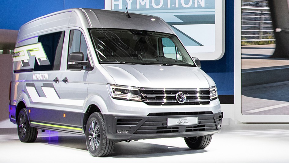 von 10: Die Wolfsburger zeigen außerdem den Crafter Hymotion. Mit einem Brennstoffzellen-Antrieb soll die Studie über 500 Kilometer Reichweite haben.