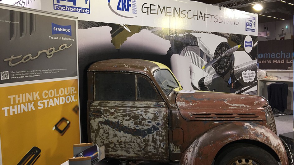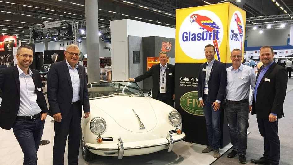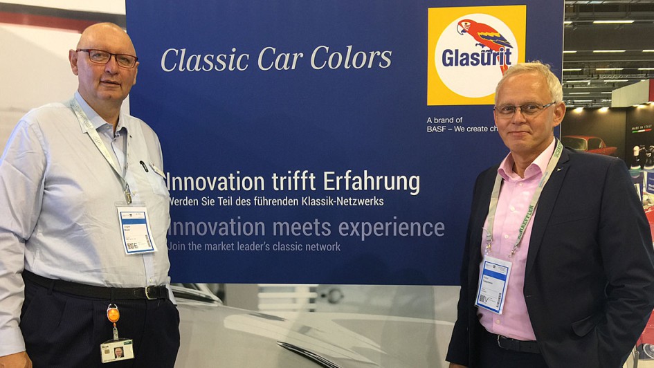 von 33: Clemens Bierig, Vertriebsleiter BASF Coatings, und seine Mitarbeiter präsentierten am Beispiel eines Porsche 356 Roadster eine Neulackierung, die in einem speziell ausgearbeiteten Prozess künstlich gealtert wurde.