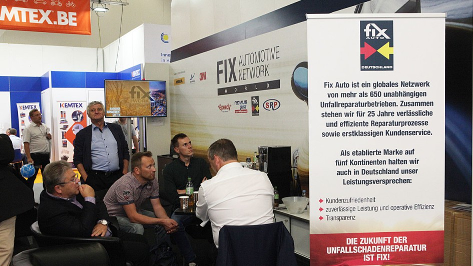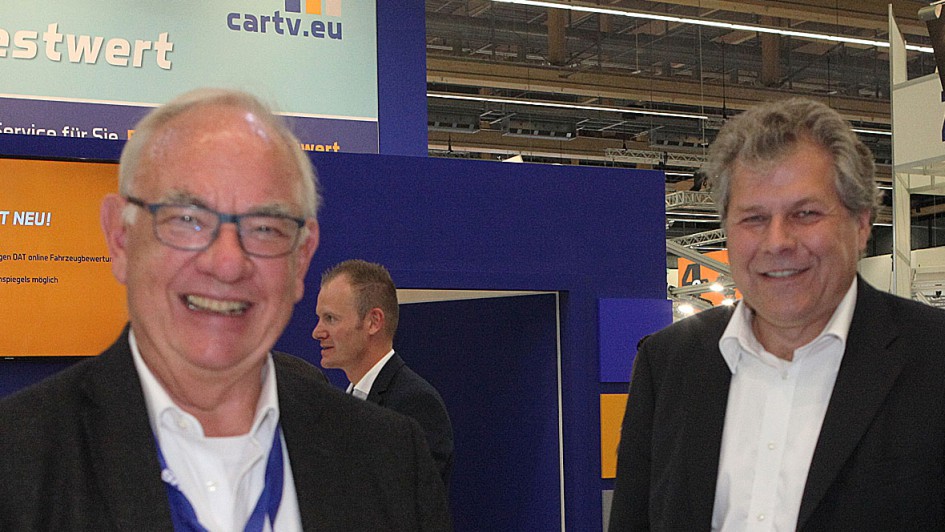 von 33: Wolfgang Wolk (KAM DEKRA Automobil, mi.) zusammen mit einem Kollegen (l.) auf dem Audatex AUTOonline-Stand bei Erik Jahn, Leiter Operations & Customer Service.