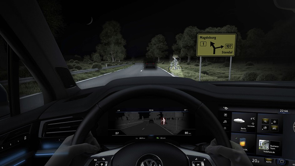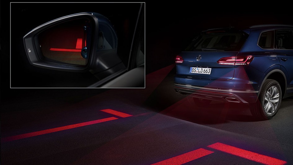 von 5: Die neuen Projektionsscheinwerfer sind in der Lage, richtige Bilder auf die Straße zu zeichnen: Zum Beispiel Begrenzungsstreifen, die dem Fahrer die Wagenbreite auf die Straße projizieren.